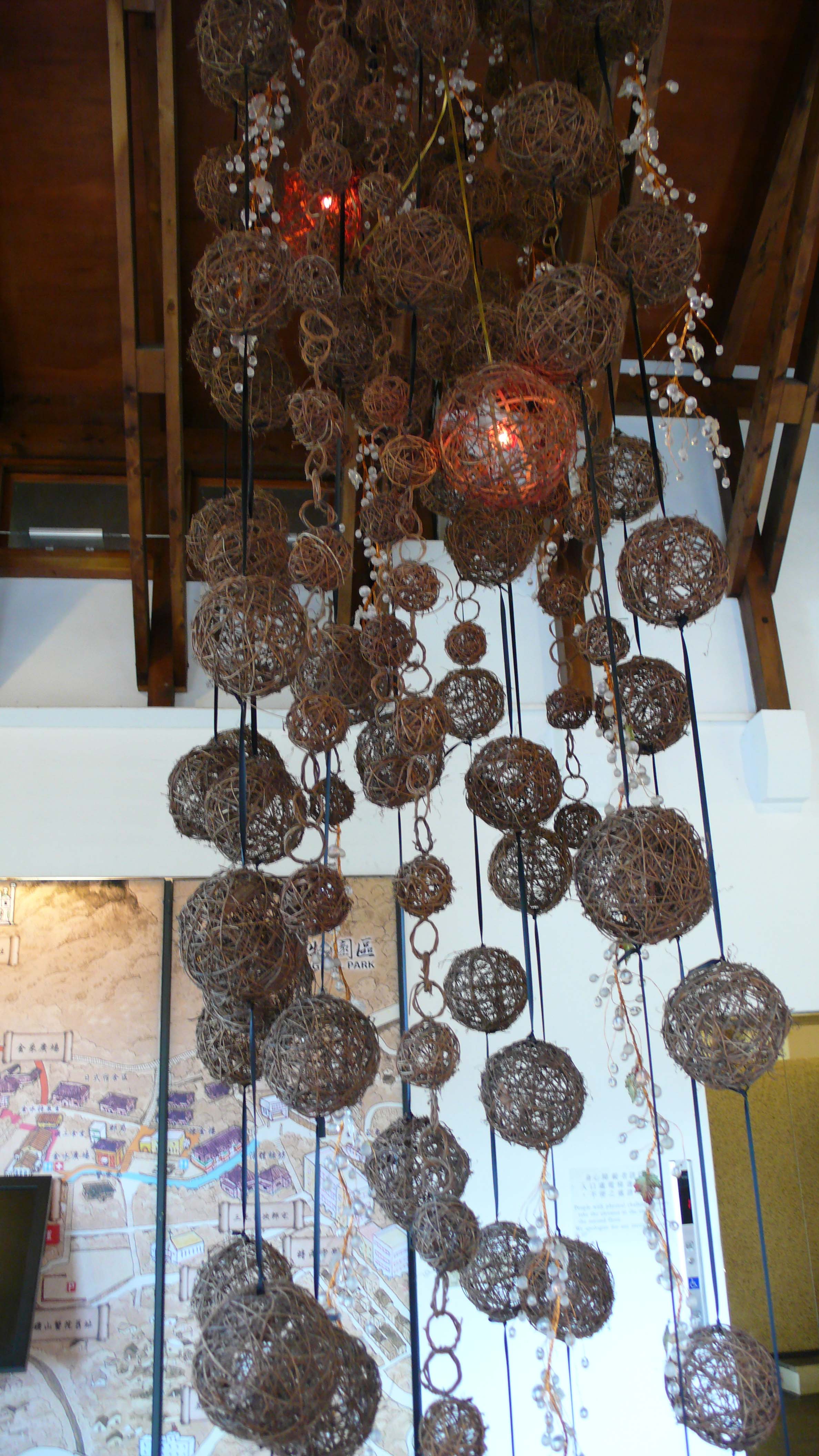 我很喜歡這大堂的這串吊燈,用一顆顆地鐵絲纏繞成的球串成,