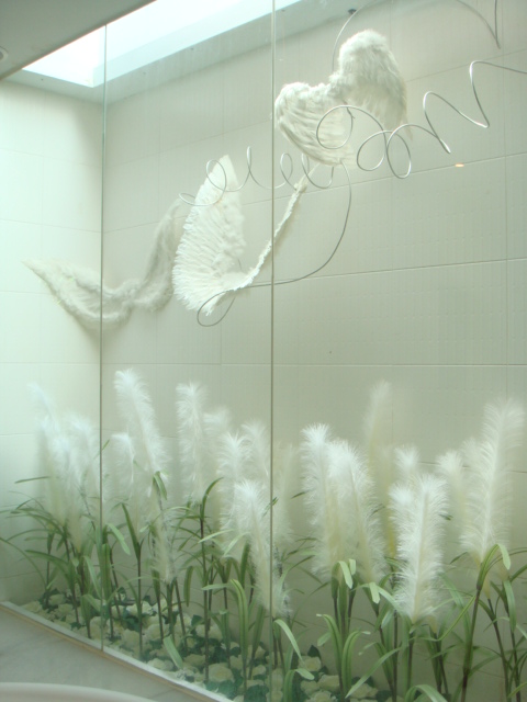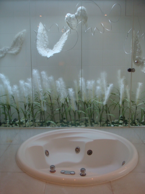 在按摩浴缸的旁邊,也有羽毛和蘆草的裝飾,泡澡時可以欣賞一下!!
