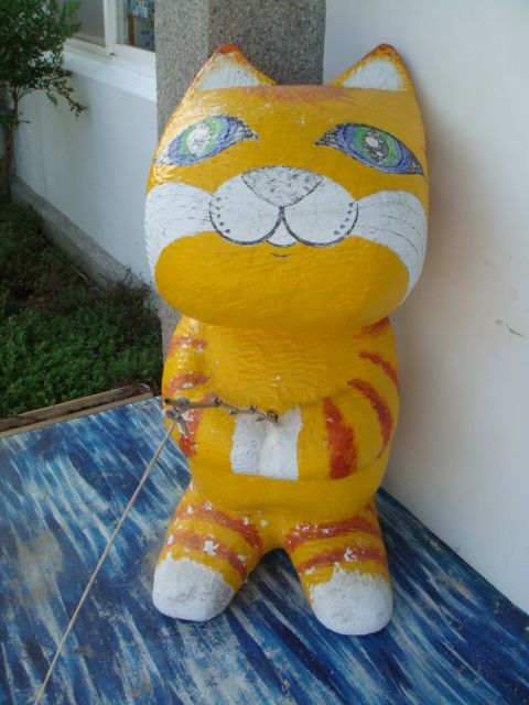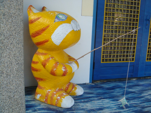 門口那隻大大的釣魚的木頭貓,就是嘔心瀝血之作,