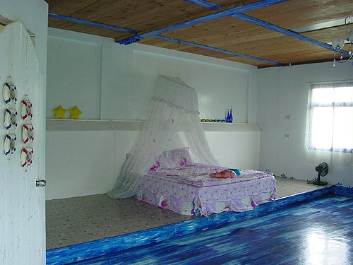 民宿外觀是地中海風的建築裝潢,沿著樓梯往上,2樓就是漢妮的房間,