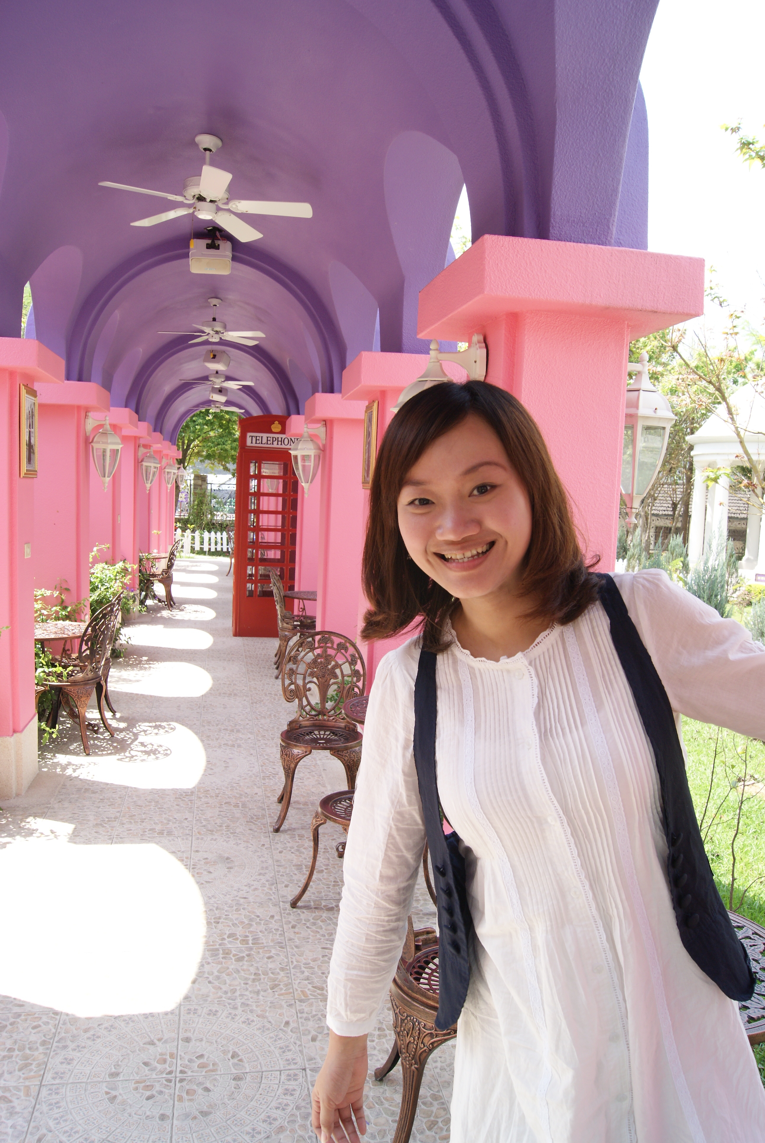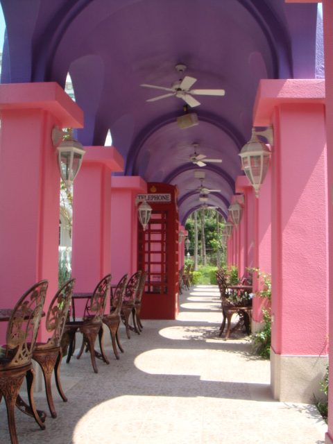 這紫色和粉色搭配的廊道,超漂亮的,是所有建築我最愛的,